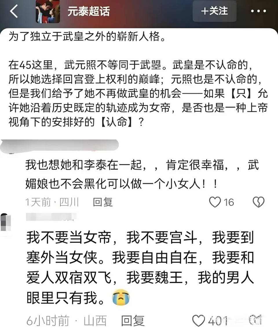 当21世纪的游戏编剧给7世纪的女皇强行套上恋爱脑设定时,当代女性玩家用差评表达了不满。有考据党翻出拍摄通告,发现剧中竟安排女帝假扮舞姬取悦外族,更让扩疆之君沦落为绿林好汉。这些为爱情至上服务的桥段,与当下女性追求事业独立的价值观形成尖锐对立。正如某条高赞评论所言:我们期待看到凤袍加身的政治家,不是罗裙委地的恋爱标本。
