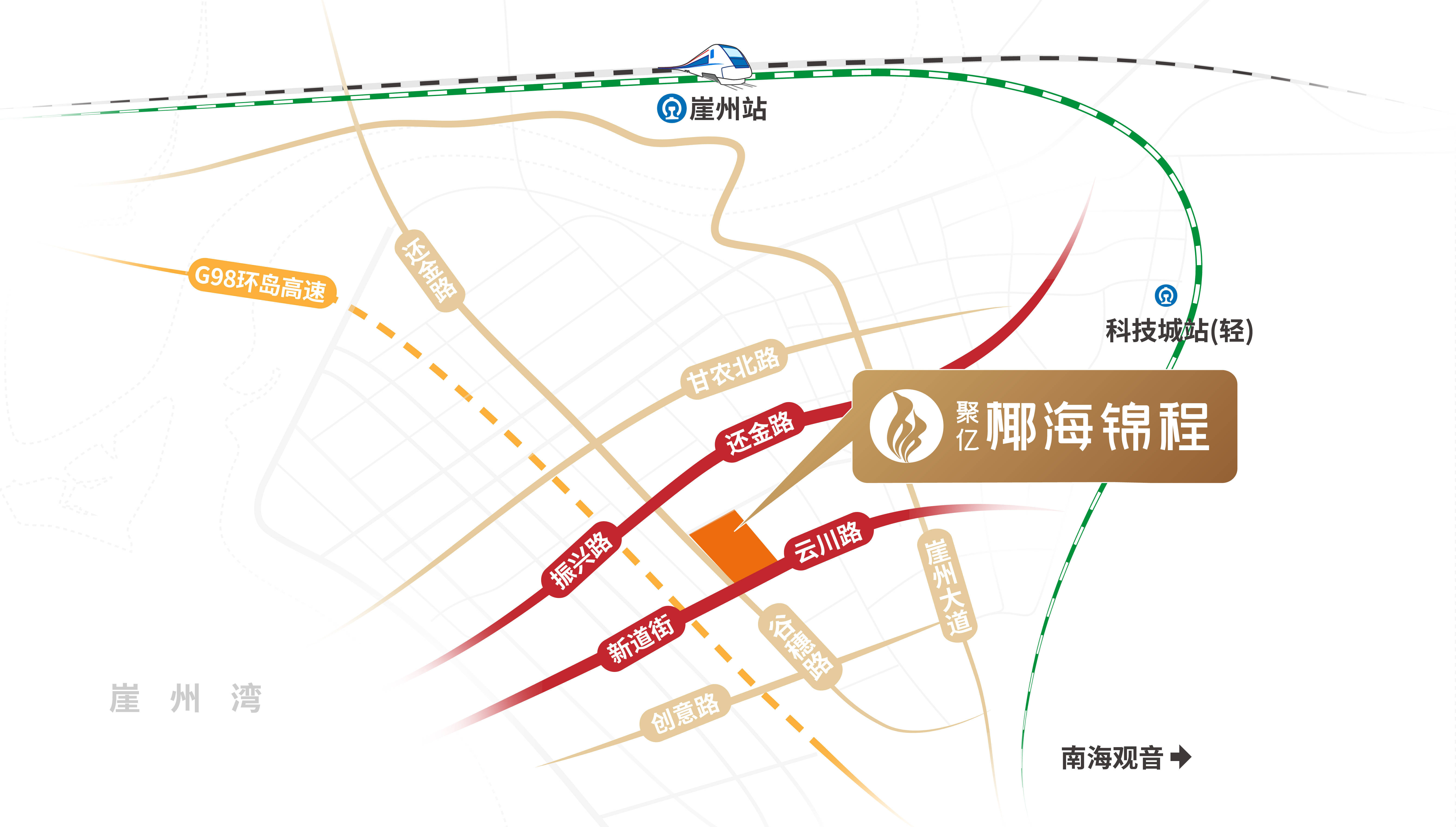 未来,区域内将打造甘农北路、还金路、云川路、创意路4条通海道路,项目南北两侧分别占据还金路和云川路两条通海道路,连通深海科技与南繁板块,近享两大板块繁荣。