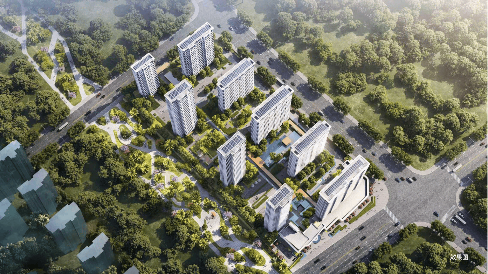 东揽南繁公园中央景观轴,周边还分布着观海公园、通海公园、滨海公园、滨河公园、中央公园、三角梅科博园等多个公园,闲暇时漫步公园,听海风、赏绿植,度假感随时在线。