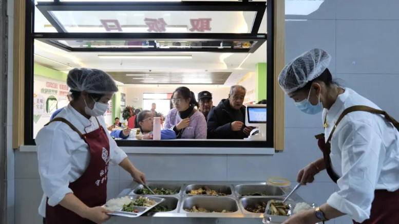 “开饭咯……”正午时分,城关镇北景苑社区食堂里,伴随着这声亲切的招呼,饭菜香愈发浓郁。老人们陆续走进餐厅,互相打着招呼,脸上洋溢着幸福的笑容。