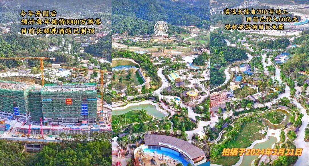 清远长隆是全国第三座长隆乐园,也是规模最大的长隆乐园,项目总投资近300亿元,占地14.4万亩,相当于15个番禺长隆。