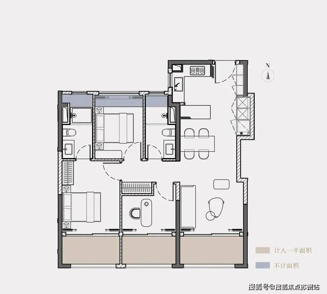 约96%实得率,直接碾压市面上同面积户型!三私密性、尊贵感、实用性全拉满。