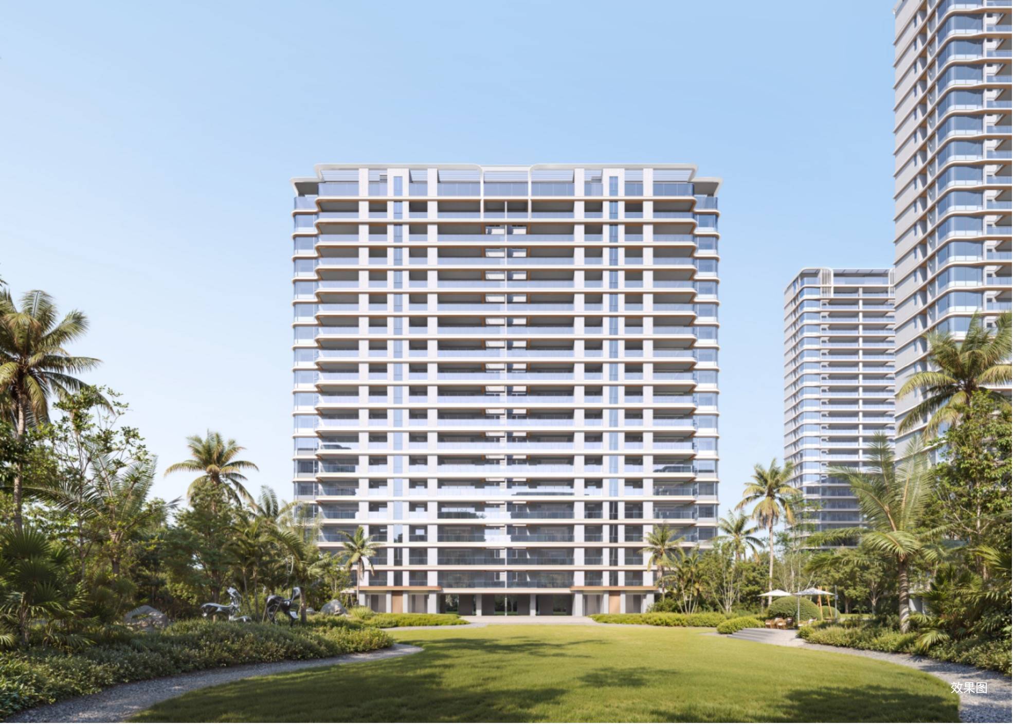 灵感汲取“椰风海韵”,以现代主义笔触革新建筑美学,将热带海岸的诗意风物,化作流淌于空间中的叙事语言。