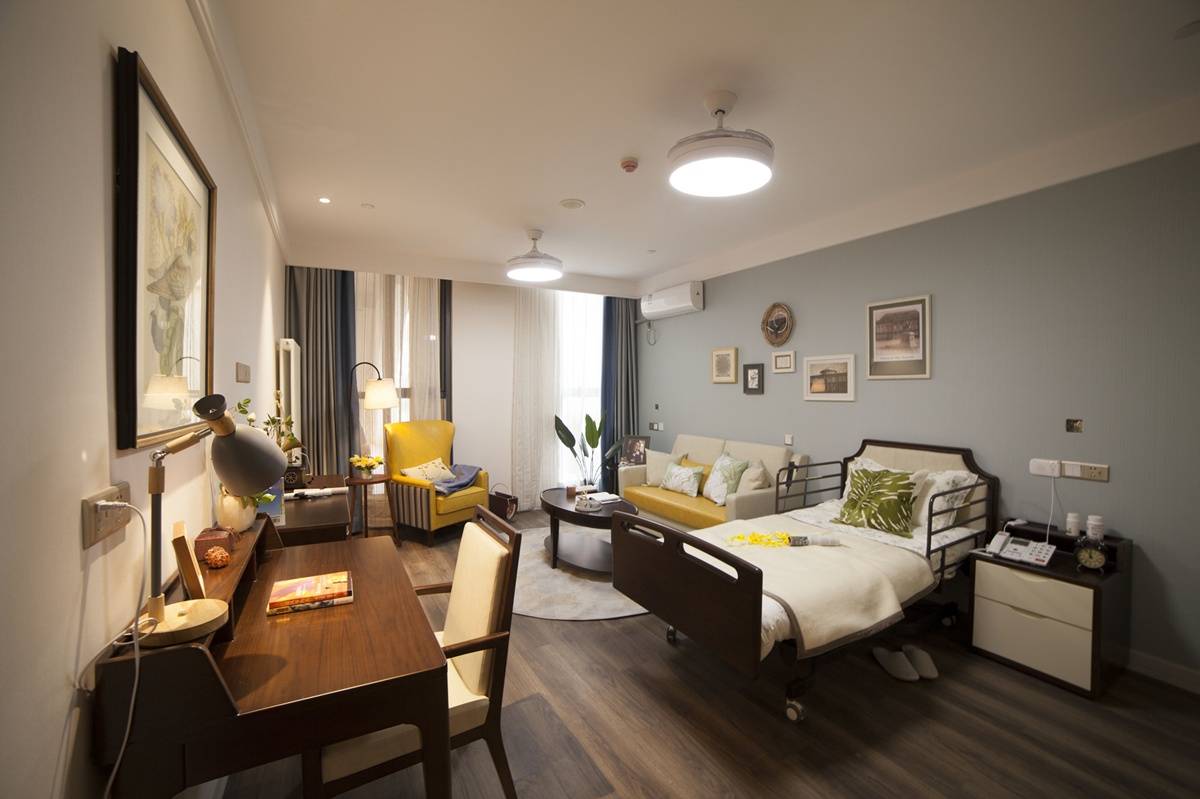 · 居室配置沿墙连续L型扶手、高级电动护理床、专业呼叫及生命体征监控床垫,独立无障碍卫生间实现干湿分离,全方位保障居住安全与舒适。