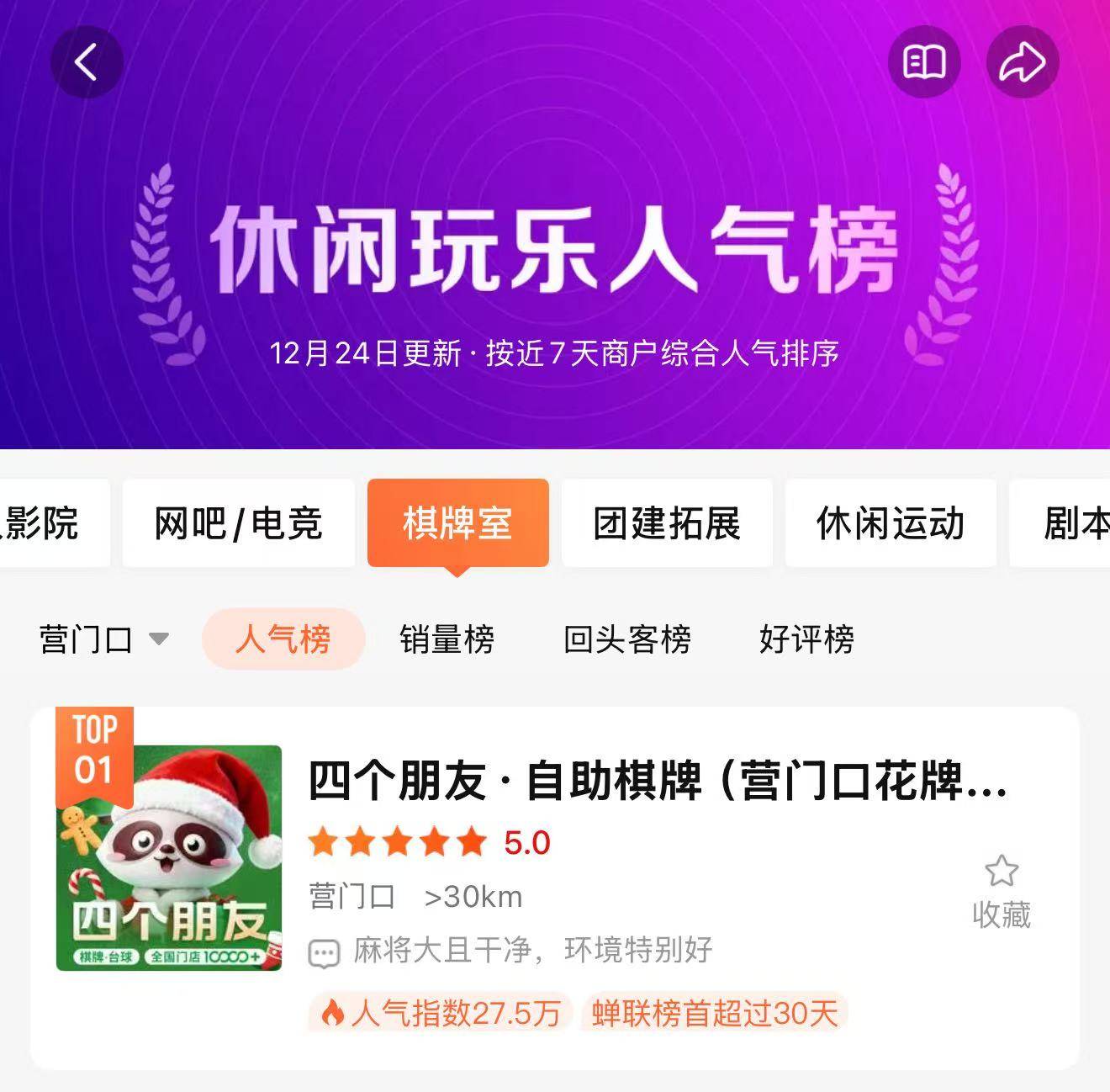 值得关注的是,这一演变并非单向的“平台主导”,而是品牌商户与平台之间的双向互动。以自助棋牌领域的头部品牌“四个朋友”为例,其在全国范围内已布局超过10000家加盟门店,覆盖300余座城市,累计服务消费者超过1亿人次,品牌会员用户超1700万。这种规模化扩张使其在平台内形成了较强的品牌辨识度与用户基础。通过标准化的门店形象、统一的服务流程、品牌化的营销内容,头部品牌能够在平台上建立信任资产,进而获得平台的流量倾斜与榜单推荐。平台则通过直播工具、评价体系与曝光资源,为优质品牌提供转化通道。这种协同机制,使得头部品牌在平台内形成了正向循环:更多好评带来更高排名,更高排名带来更多客流,更多客流进一步积累评价数据。